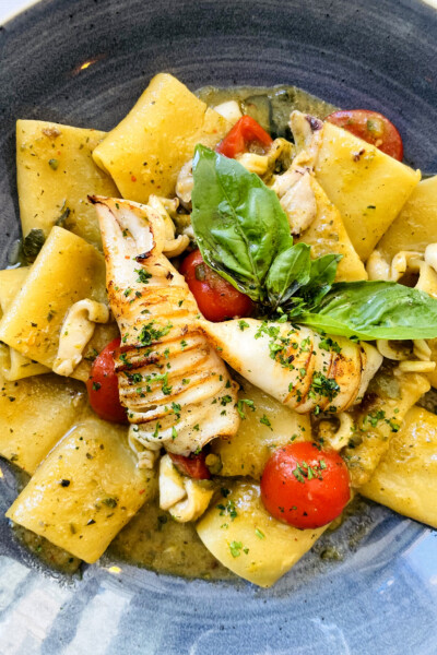 En cuisine les recettes sont simples et inventives, elle s’attachent surtout au respect des produits et à la fantaisie de leur interprétation : la pizza « Sù per i bricchi », tomate, mozzarella, fromage de chèvre, bresaola et roquette ou les paccheri all’amalfitana, mozzarella fumée, chair à saucisse, aubergines, sauce tomate et basilic… Bref, une déclinaison de saveurs préservant la nature des produits italiens.